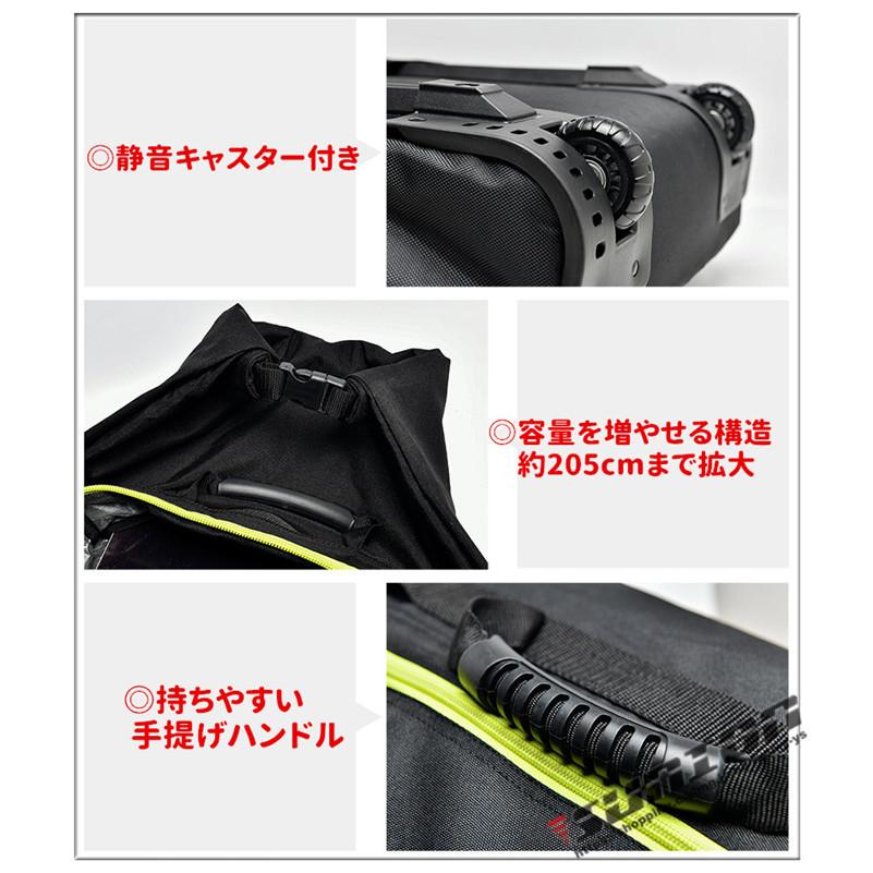 商品情報 [商品説明]スリムなボディに驚くほどの収納力を搭載 バスツアーや長距離移動の必須アイテム 【商品特徴】 静音キャスター付き 大容量収納タイプ フルオープンして出し入れしやすい 4WAYタイプ 荷物一式まとめて収納可能 表地素材:増厚工法仕様/600D防水耐摩素材 裏地素材:防水PE素材 容量を増やせる構造:約42cmまで拡大 商品詳細 【素 材】防水600DPVC素材 【サイズ】縦165cm×横38cm×奥行30cm 【重 さ】約4.3kg |